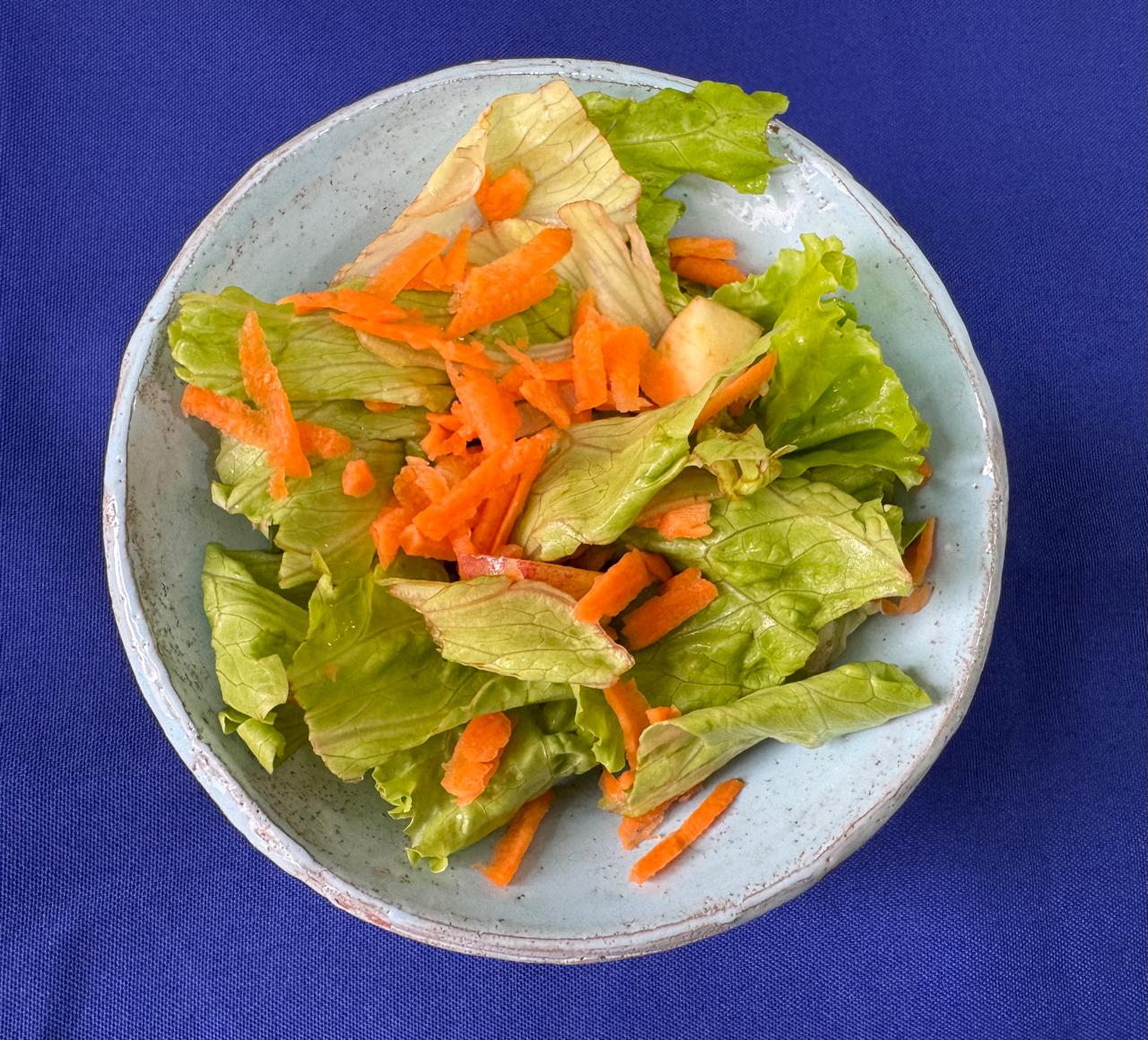 Lave as folhas das alfaces. Escorra bem e, numa tigela média, coloque as folhas das alfaces, rasgando-as suavemente com as mãos. Reserve. Lave a cenoura, raspe a casquinha com uma faca ou raspador manual e rale em ralo grosso (ou pique em tira bem finas). Misture às alfaces e reserve. Lave a maçã, retire o caroço e as sementes, e pique em pedacinhos quadrados. Finalize a sua salada crocante, colocando os pedacinhos de maçã por cima das alfaces e da cenoura. Tempere ao seu gosto e sirva em seguida.